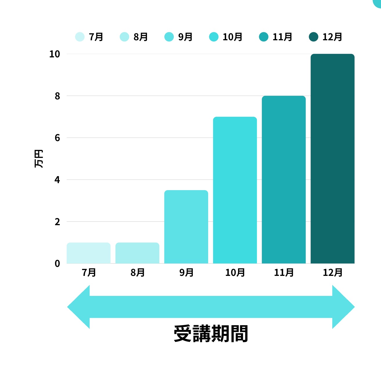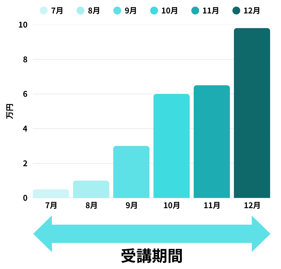- 成果:最初の2ヶ月は習得に苦労。収益は2万円 → 5万円 → 半年で10万円近く