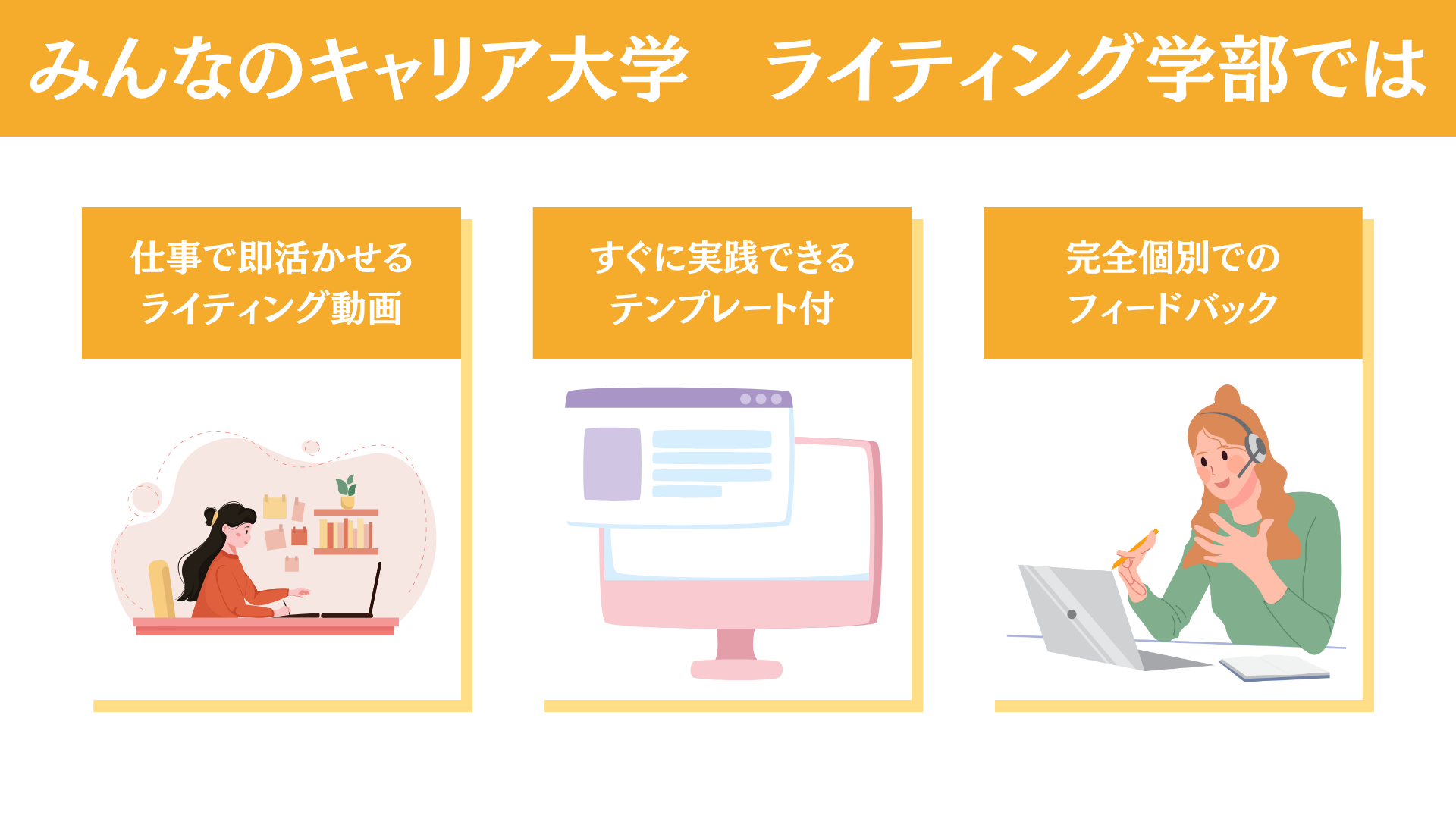 - みんキャリの強み:マンツーマン指導・添削・案件獲得サポート・動画教材